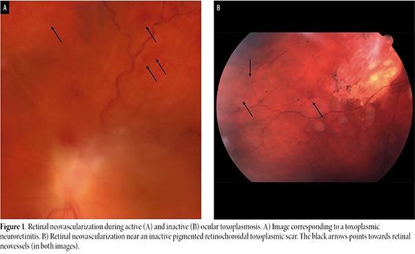 Purpose: To establish the frequency and clinical characteristics of retinal neovascularization (RN) as a complication of ocular toxoplasmosis (OT). Further, to report the most frequent approach of RN treatment used in OT patients.