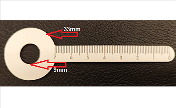 Materiais e métodos: Dois dispositivos plásticos com abertura central foram projetados para alinhamento com o olho e usados na frente das armações para verificar se a zona de tratamento óptico estava corretamente posicionada. Um adere diretamente à armação e é removível; o outro é segurado manualmente para verificar a centralização da zona de tratamento anular de 33 mm. Ambos foram testados em um paciente míope voluntário para avaliar o alinhamento da zona óptica usando lentes Myofix® (Novar, Argentina), que possuem uma zona central de 9 mm para visão à distância e uma zona de tratamento periférica completa.