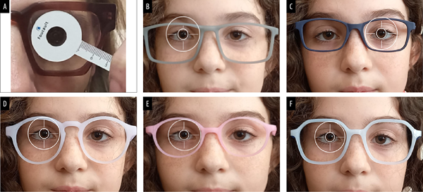 Considering myopia control spectacles designs, in order for the 33 mm optical treatment zone to be completely inside the elected frame, the distance from center of the pupil to each of the edges of the frame must be at least 16.5 mm7. This can be simply checked with any of the two devices developed by our research team. For effective myopia control, the 33 mm optical treatment zone must fit entirely within the selected frame14-15 . This method ensures the lenses are accurately centered, optimizing the effectiveness of myopia control. In this study, the importance of selecting the correct frame for myopia control spectacles was highlighted, as these spectacles need precise centration to ensure their efficacy. Proper alignment of the treatment and distance zones within the frame is crucial to achieve effective myopia control. By carefully selecting frames and utilizing these calibration devices, practitioners can enhance the efficacy of myopia control spectacles, ensuring patients receive the full therapeutic benefit of the treatment.