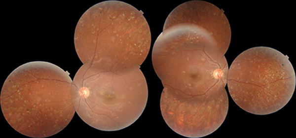 Caso clínico: Una paciente de 34 años concurrió para realizar control de rutina. Tenía antecedentes de asma bronquial, hipertensión arterial y GPM con depósitos de IgM que requirió trasplante renal. En su exploración se constató una agudeza visual de 10/10 en ambos ojos. Como hallazgo, en el fondo de ojo se detectaron múltiples lesiones redondeadas de menos de un cuarto de diámetro papilar en polo posterior con compromiso macular, perifoveales y en retina periférica 360°. En la tomografía de coherencia óptica se observaron alteraciones del perfil posterior compatibles con depósitos drusenoides a nivel del epitelio pigmentario retinal y múltiples imágenes hiperreflectivas por alteración del EPR a nivel de la retinofluoresceinografía. Se realizaron además estudios de campo visual que evidenciaron escotomas aislados en ambos ojos y electrorretinograma de características normales.