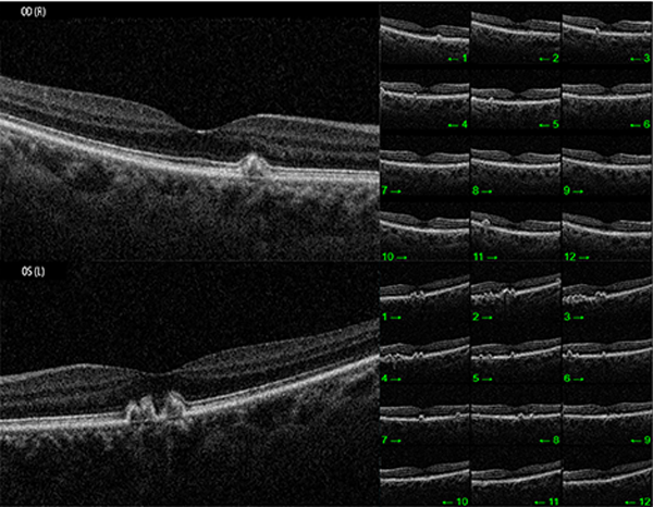 Figura 2. OCT macular de ojos derecho e izquierdo.