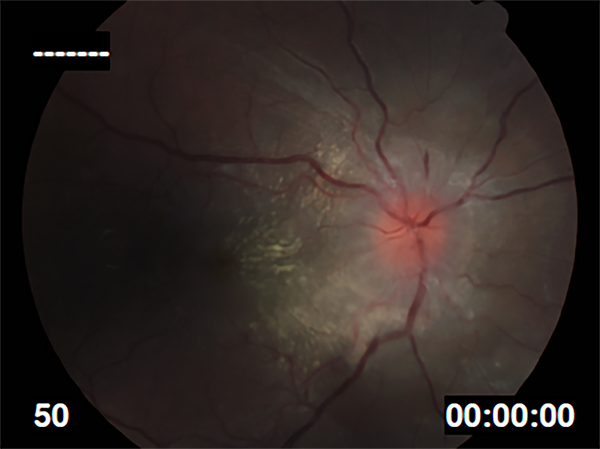 Una joven de 15 años, sin hábitos tóxicos ni antecedentes patológicos conocidos, ingresó al nosocomio por un cuadro rápidamente progresivo de disminución de la agudeza visual bilateral asociado a episodios de cefalea intensa. Al ingreso, en el interrogatorio la paciente refirió cuadro de 3 meses de evolución que comenzó con episodios de cefalea intensa; luego fue progresando con disminución de la agudeza visual severa en ambos ojos de manera secuencial y afectó inicialmente el ojo izquierdo (OI). En el fondo de ojo se determinó la presencia de papiledema bilateral por lo que se realizó resonancia magnética nuclear (RMN) de cerebro por sospecha de hipertensión endocraneal y para descartar lesión ocupante de espacio.