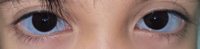 Figura 1. Fotografía del aspecto externo de los ojos con escleras azules bilaterales.