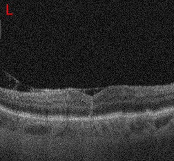 Figura 3. OCT del OI donde se observa el cierre del AM después de la VPP con masajes de bordes y colocación de aceite de silicón.