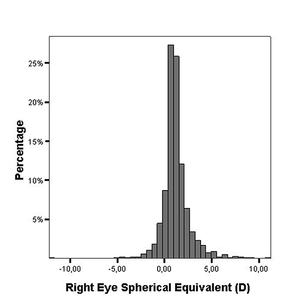Figure 1. Distribution of the spherical equivalent of the auto refracted right eyes.