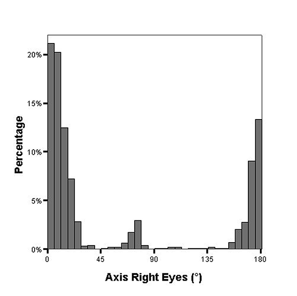 Figure 3. Distribution of the axis of the cylinder in right eyes.